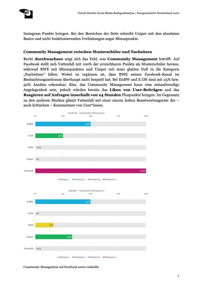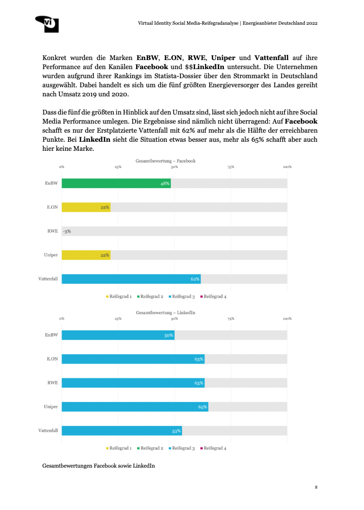 - Auf Facebook schafft es nur der Erstplatzierte Vattenfall mit 62% auf mehr als die Hälfte der erreichbaren Punkte.