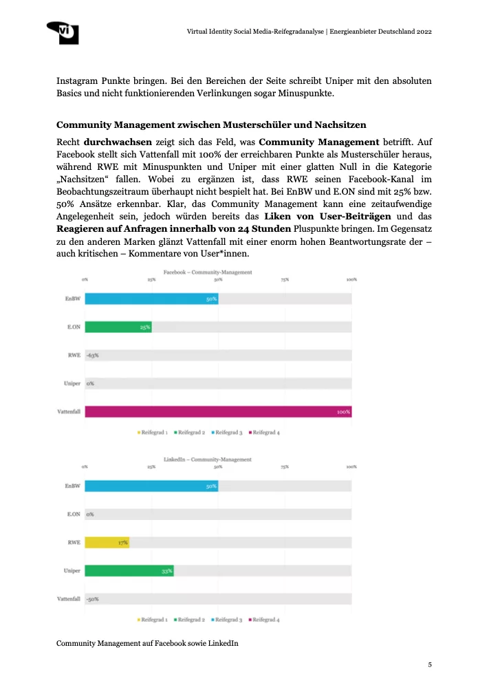 • Auf Facebook schafft es nur der Erstplatzierte Vattenfall mit 62% auf mehr als die Hälfte der erreichbaren Punkte.